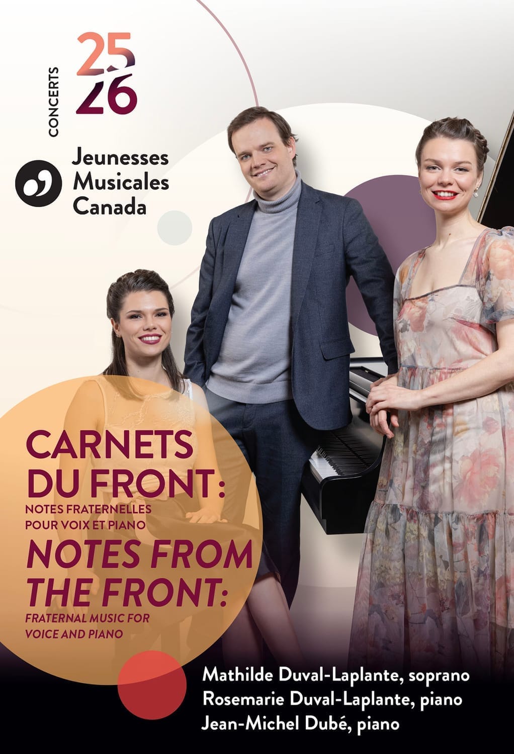 À travers ce concert, la soprano Mathilde Duval-Laplante et les pianistes Rosemarie Duval-Laplante et Jean-Michel Dubé proposent avec sensibilité un espace contemplatif autour de la paix en temps de guerre.